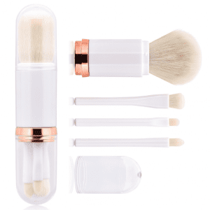 Glowii Retractable Powder + 3pcs Eyeshadow Travel Friendly Makeup Brush Set – White