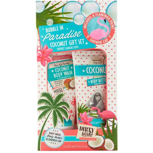 Love Coconut?! This tropical treat is perfect for those who do! An utterly coconutty duo including a Coconut Body Wash that lathers up into a frothy, foamy concoction and a rich and creamy Coconut Body Butter to help keep skin soft and smooth. What’s more there’s also a funky flamingo printed shower cap to keep hair dry whilst you’re showering away and dreaming of those holidays to come!