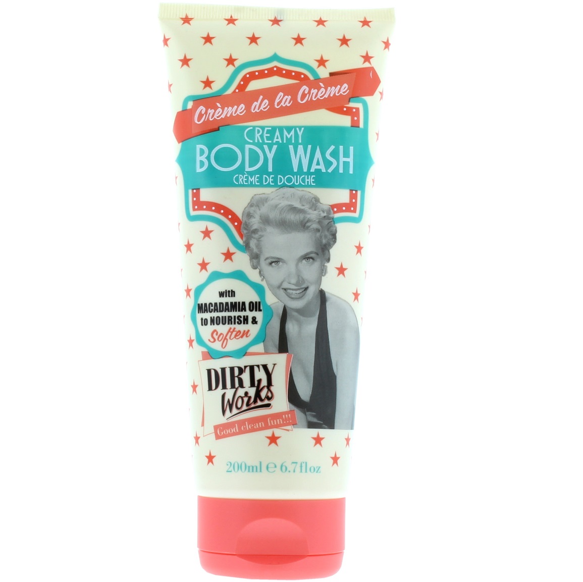 Lather up with Dirty Works Crème De La Crème super foamy, luxuriously creamy body wash combining a nourishing blend of macadamia and argan oil and soothing aloe vera.