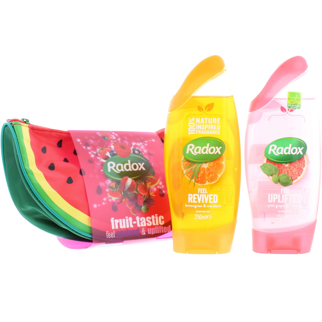/ Radox Fruit-tastic Feel Revived & Uplifted Gift Set (2x Shower Gel 250ml + Watermelon Washbag)